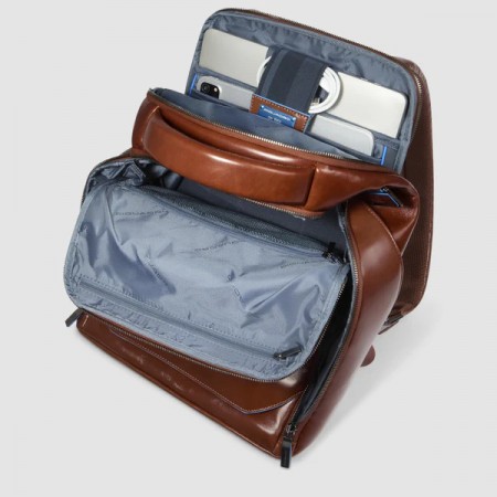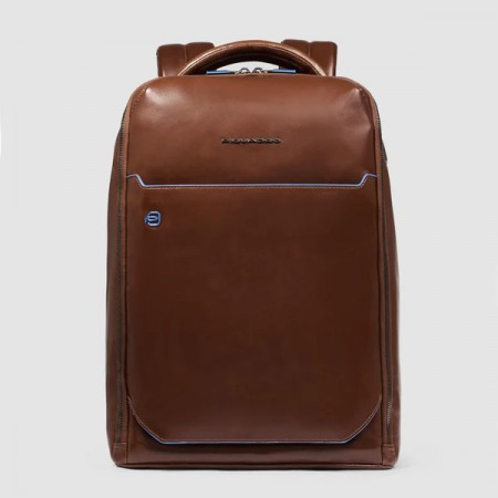 Sac à dos de la marque Piquadro-collection blue square en vachette lisse café gansé bleu