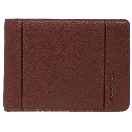 Porte monnaie billet cartes en cuir de vachette grainé en caramel RFID de la maison PIQUADRO