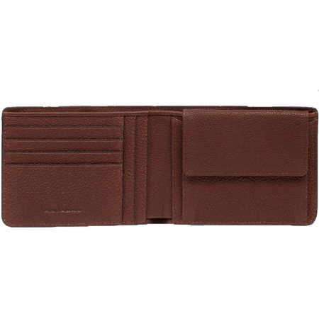 Porte monnaie cartes PIQUADRO cuir de vachette grainé caramel